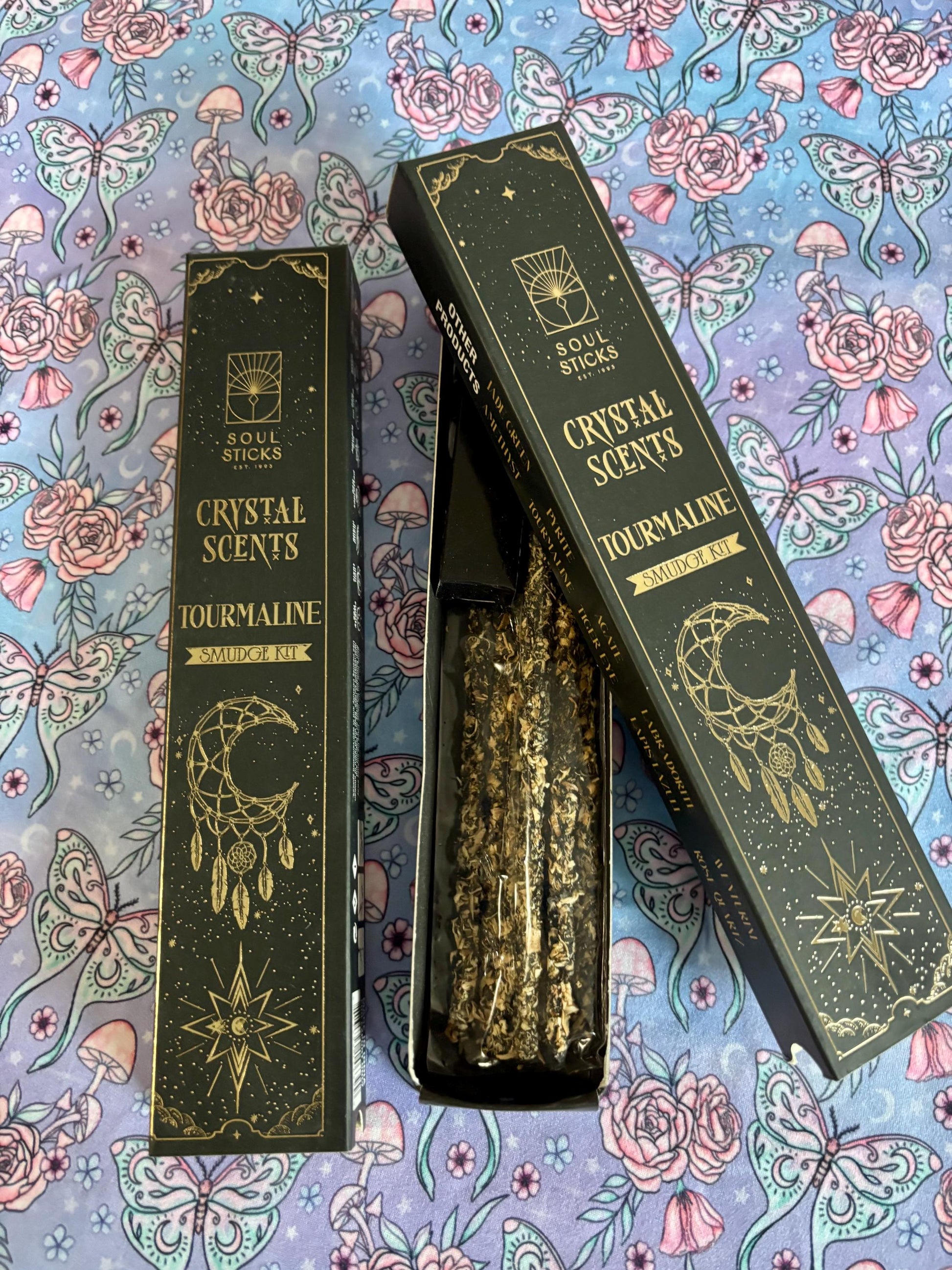Black Tourmaline, Housewarming Witchcraft Crystal Smudge Kit, Cleansing Kit For Wiccans, Ritual Supplies, Perfect For Pagans, For Beginners,
