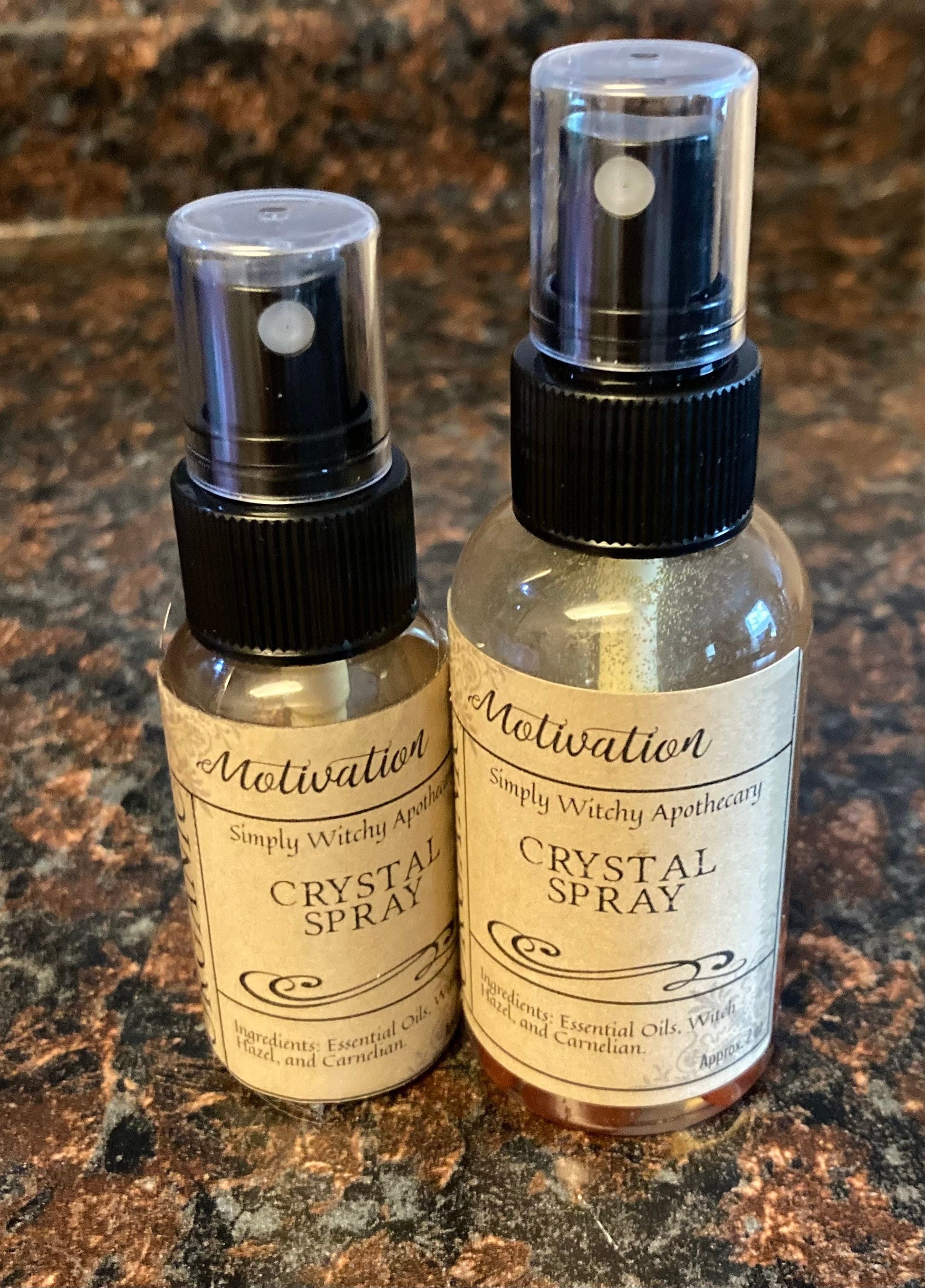 This crystal spray is intended to give motivation to the person in order to boost their energy. Created with moon water infused under a full moon and small carnelian crystals, this spray is very easy to use. Just spray a little on yourself just before you leave the house. It works even when you don't realize it.