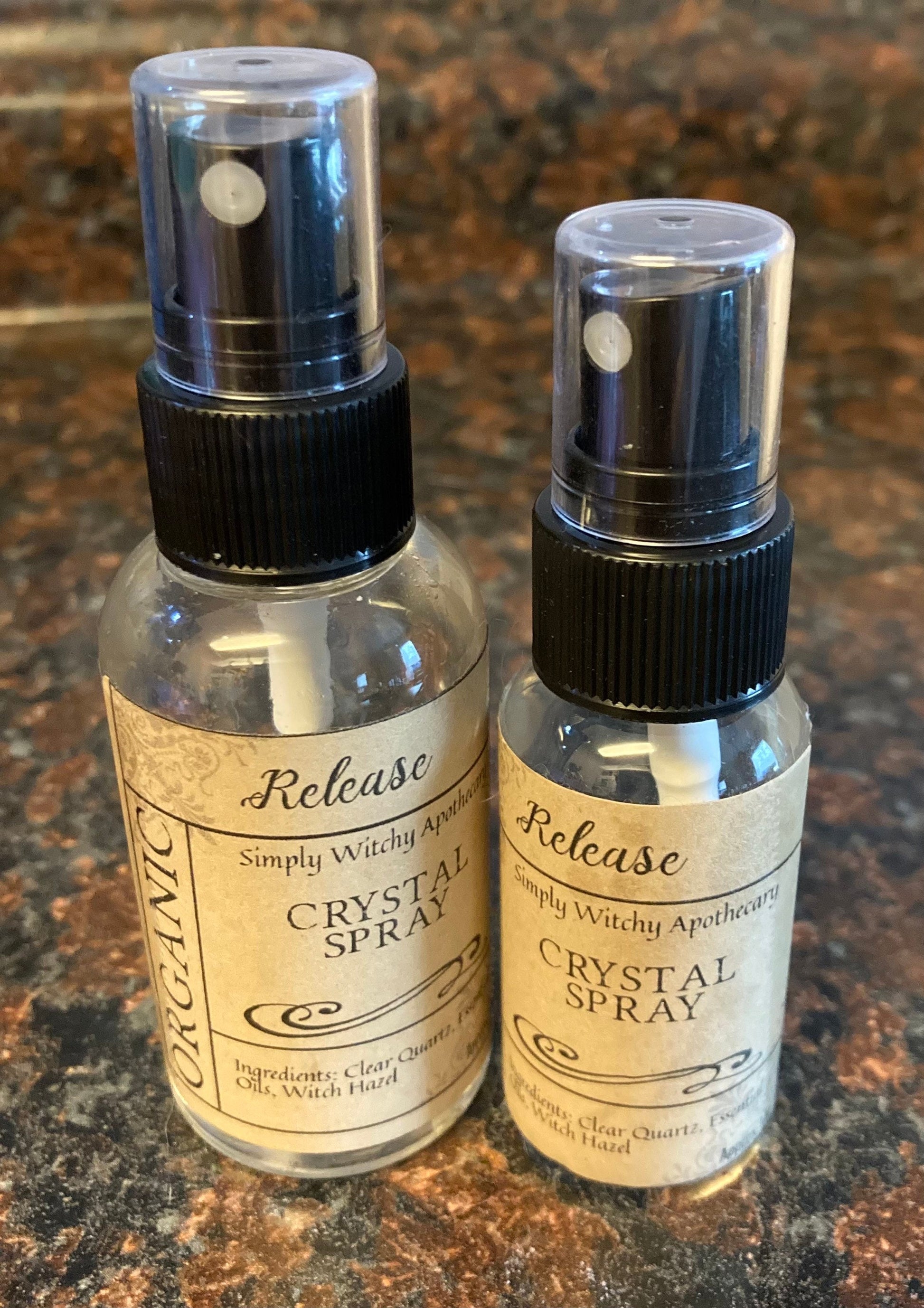 This crystal spray is intended to release the blocks the person is holding onto. Created with moon water infused under a full moon and small clear quartz crystals, this spray is very easy to use. Just spray a little on yourself just before you leave the house. It works even when you don't realize it.
