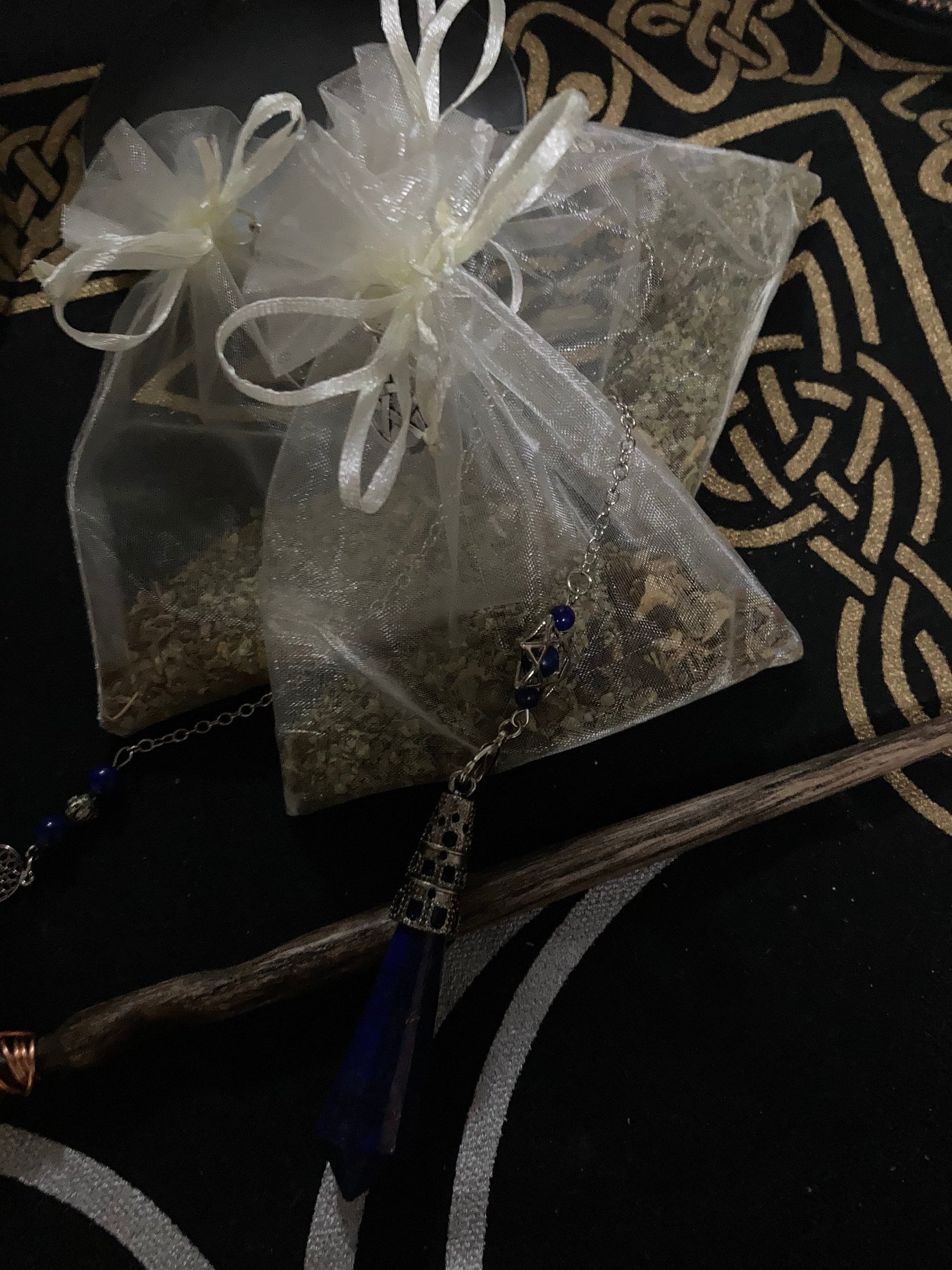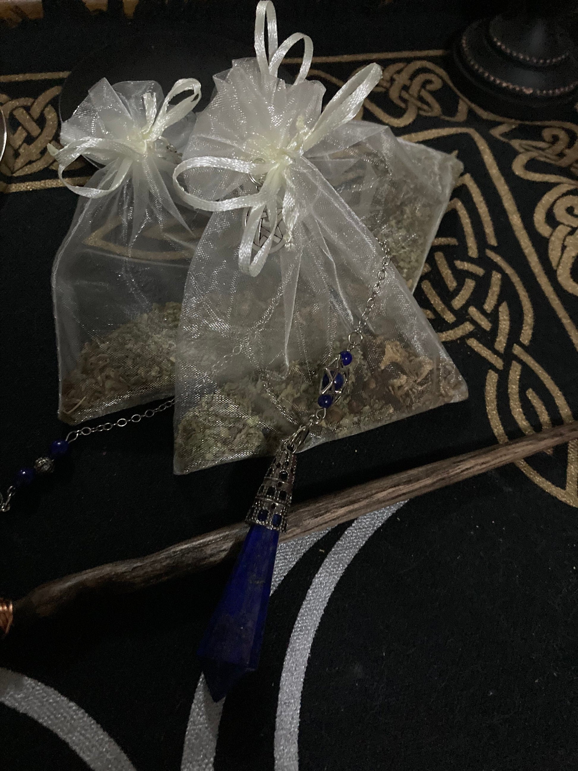 If there are certain herbs/flowers that you have an allergic reaction to, please message me with which ones, and I will gladly let you know if it is in the sachet. Also, once you receive the sachet, please do not open it. I have cast a spell upon it and it will break the spell by opening the bag.