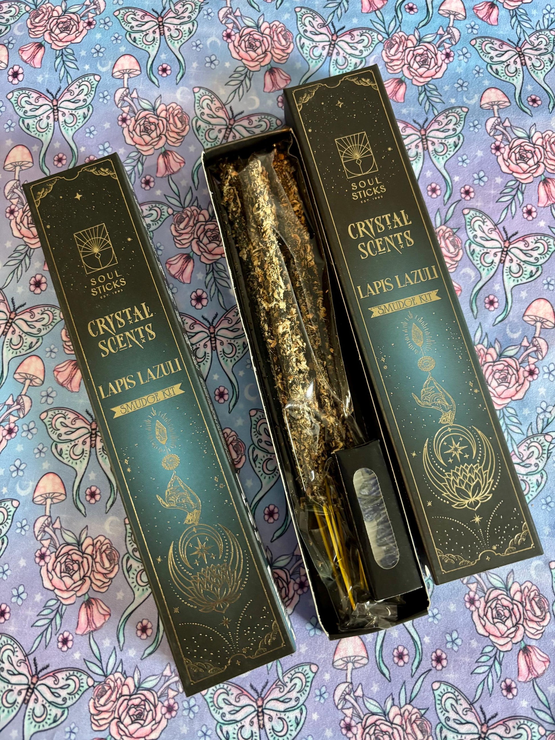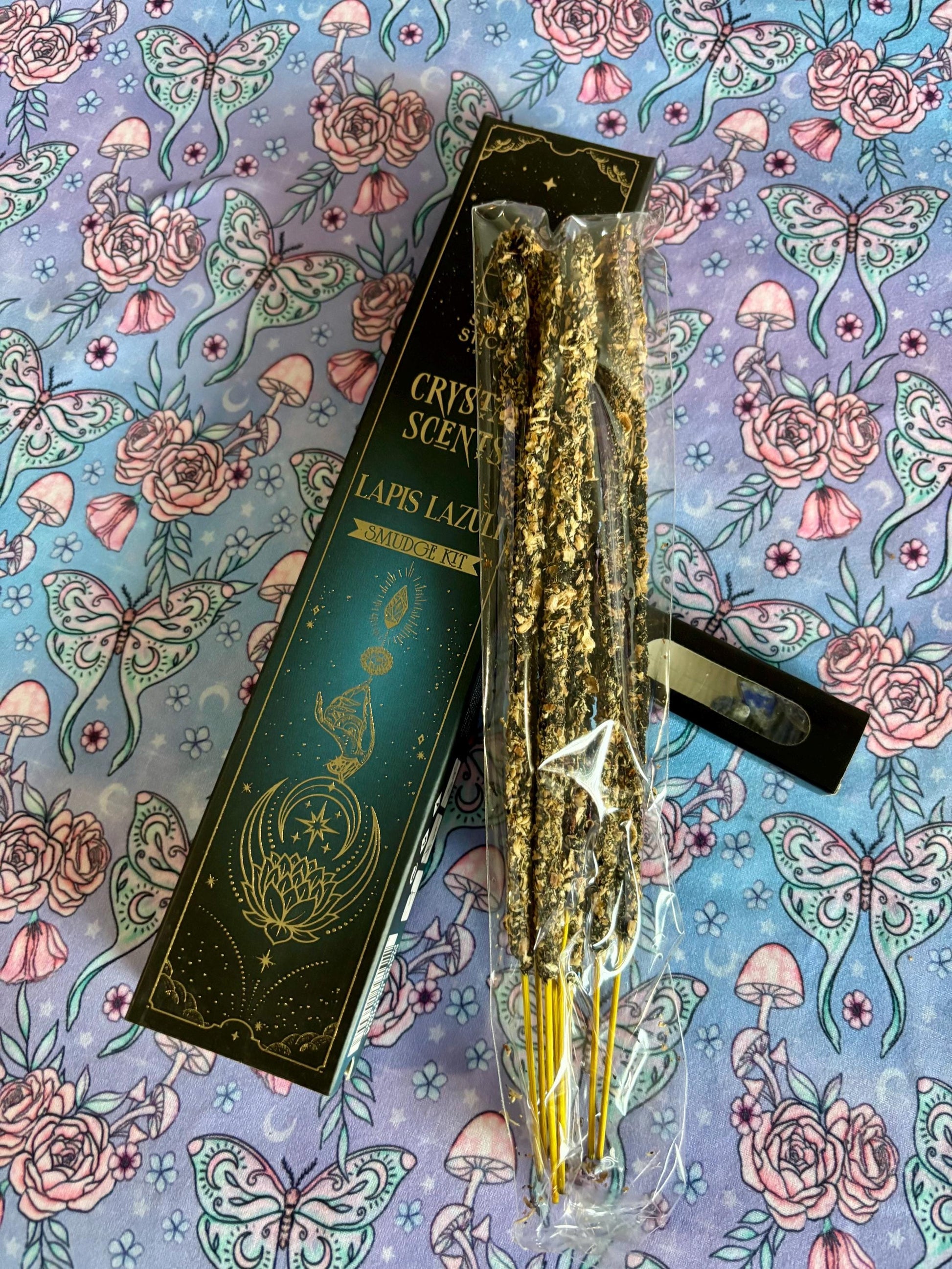 Lapis Lazuli, Housewarming Witchcraft Crystal Smudge Kit, Cleansing Kit For Wiccans, Ritual Supplies, Perfect For Pagans, For Beginners, Kit