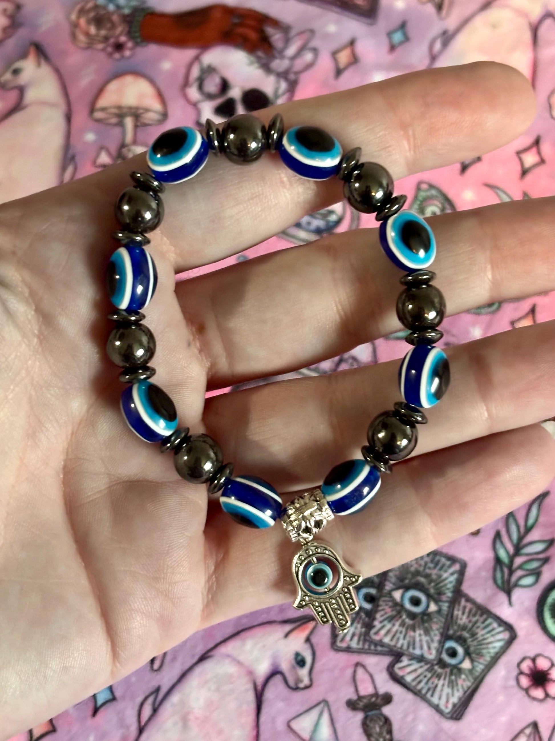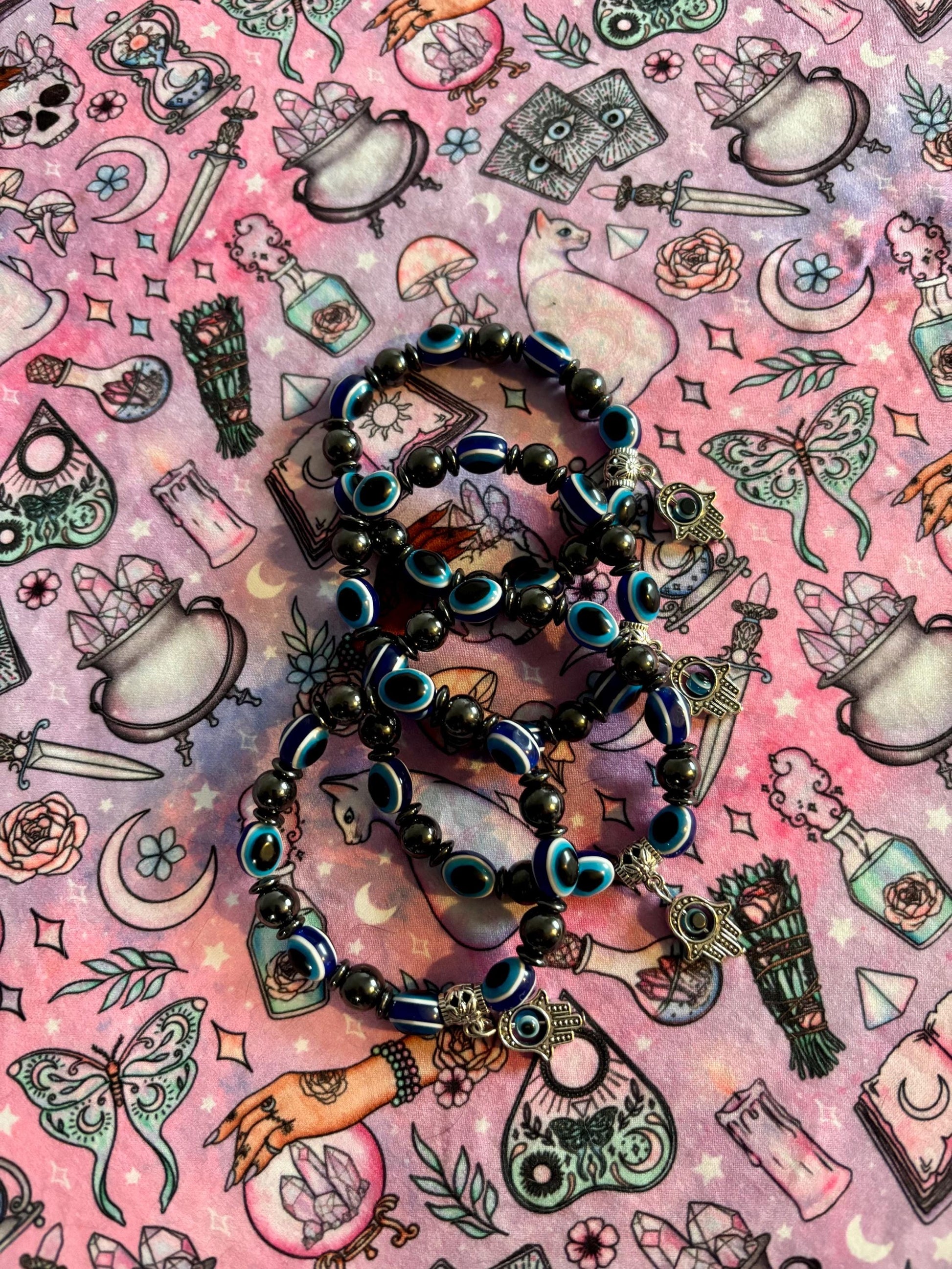 Protection Evil Eye Bracelet, Witchcraft Amulet, Unisex Stretch Band, Spiritual Bracelet, Lucky Charm, Protective Jewelry, Evil Eye Bracelet