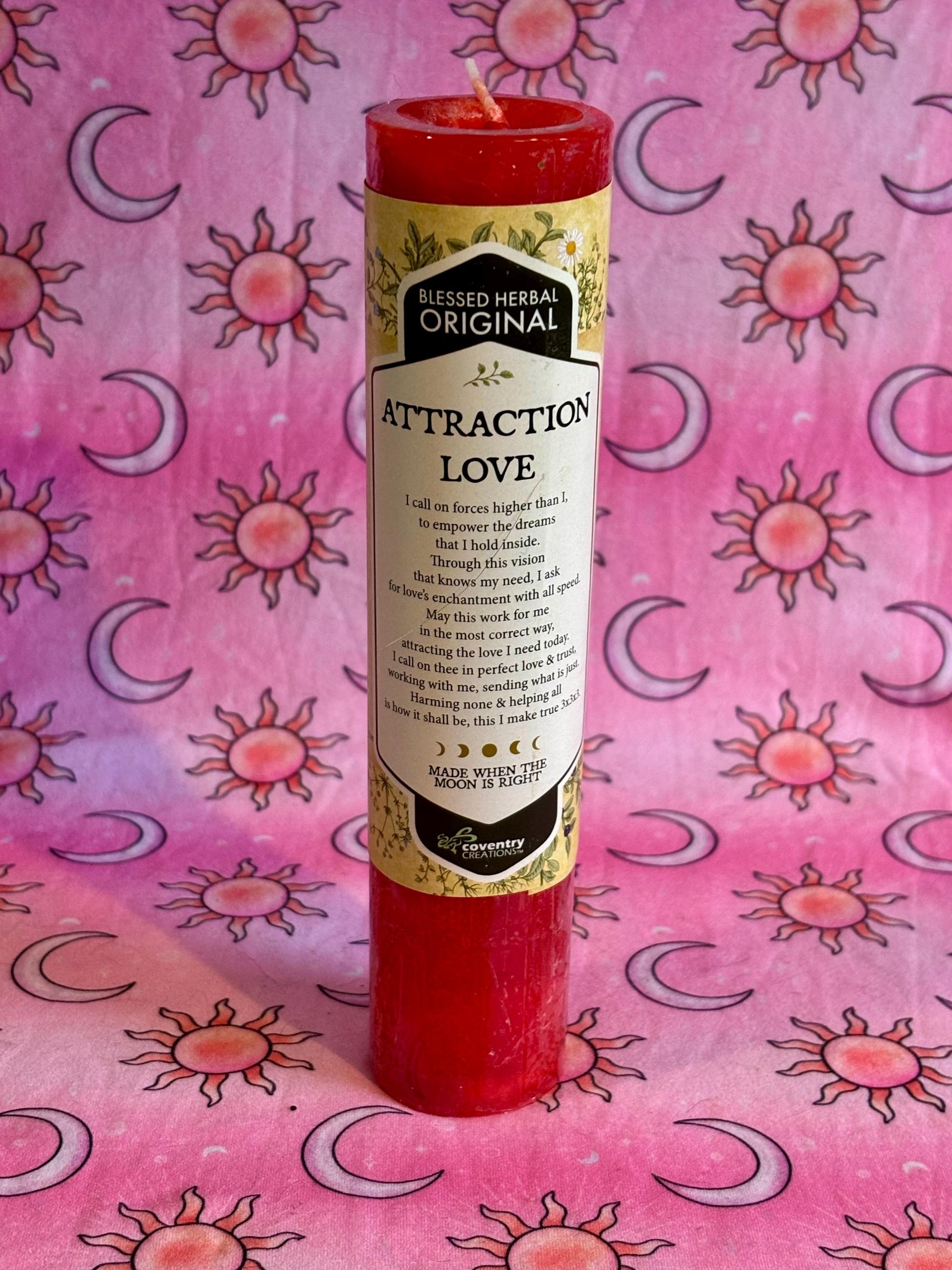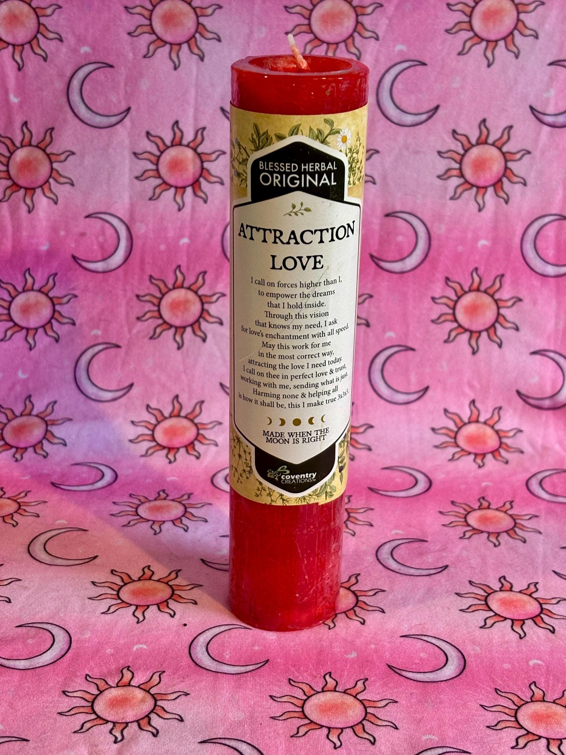 Place this mesmerizing candle on your altar, and let its captivating flame guide you on your journey toward finding your soul mate. Its gentle aroma fills your space, creating an enchanting atmosphere that whispers tales of vintage romance and endless possibilities. The Attraction Love candle is an essential companion for meditative rituals, helping you align with the universe's bountiful love energies and uncover the magical path to your heart's desires. As you light this Altar Candle, embrace the power of intention, and watch as the spellbound energy weaves a tapestry of love, bringing you closer to attracting your soul mate like never before.